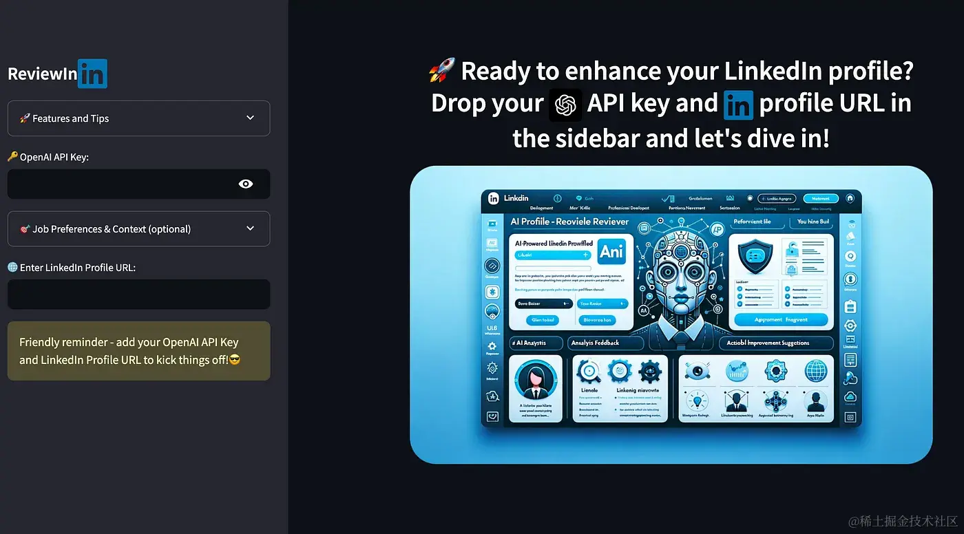 - 通过GPT-4 Vision进行图像分析:对个人资料图像进行分析,以评估其对LinkedIn专业形象的适合性和有效性。