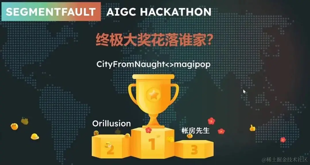 4 月 20 日,SegmentFault AIGC Hackathon 2023 黑客马拉松线上赛道决赛路演拉开序幕,本次大赛由 SegmentFault 思否发起,真格基金联合主办,以 Hack with AI**, Rebuild Everything with AI** 为主题,鼓励开发者使用 Generative AI 技术构建创新应用,以解决实际问题。