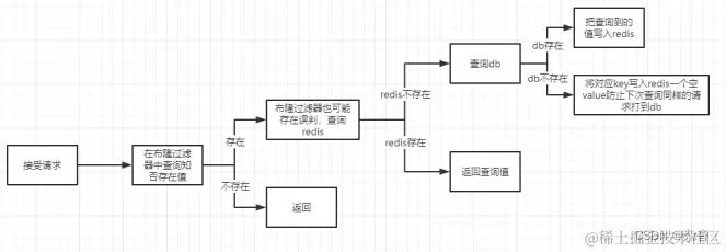 产生原因:大量请求来获取redis中不存在的值,因为redis中不存在所以请求直接打到db上,导致db压力过大宕机