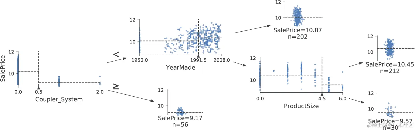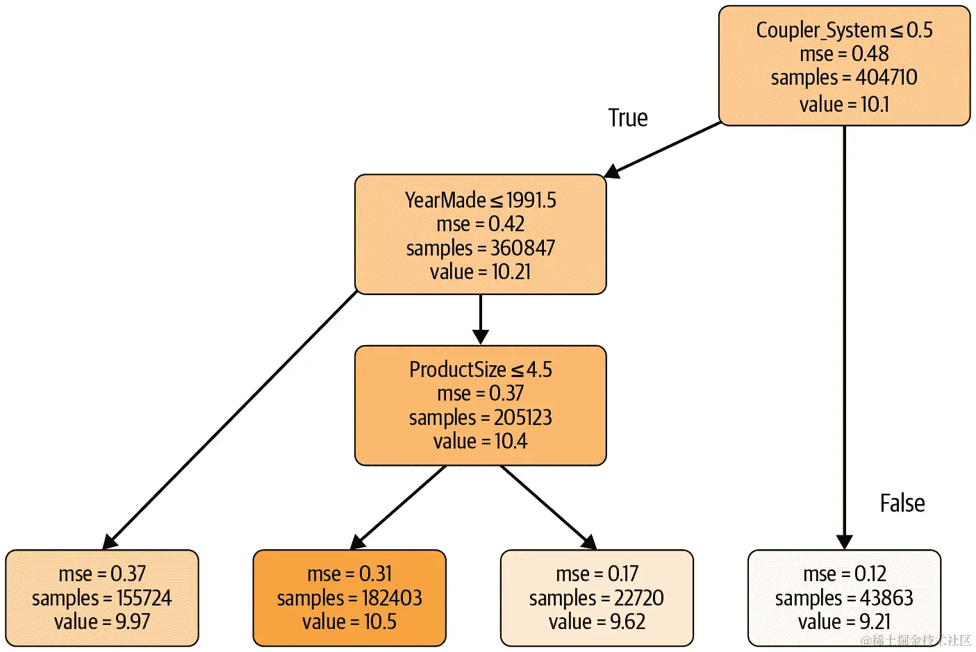 使用提升树集成进行预测,我们计算每棵树的预测,然后将它们全部加在一起。有许多遵循这种基本方法的模型,以及许多相同模型的名称。梯度提升机(GBMs)和梯度提升决策树(GBDTs)是您最有可能遇到的术语,或者您可能会看到实现这些模型的特定库的名称;在撰写本文时,XGBoost是最受欢迎的。