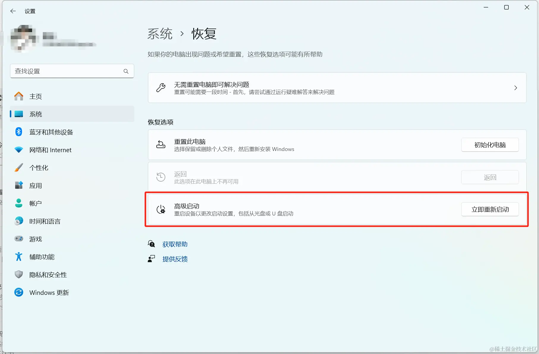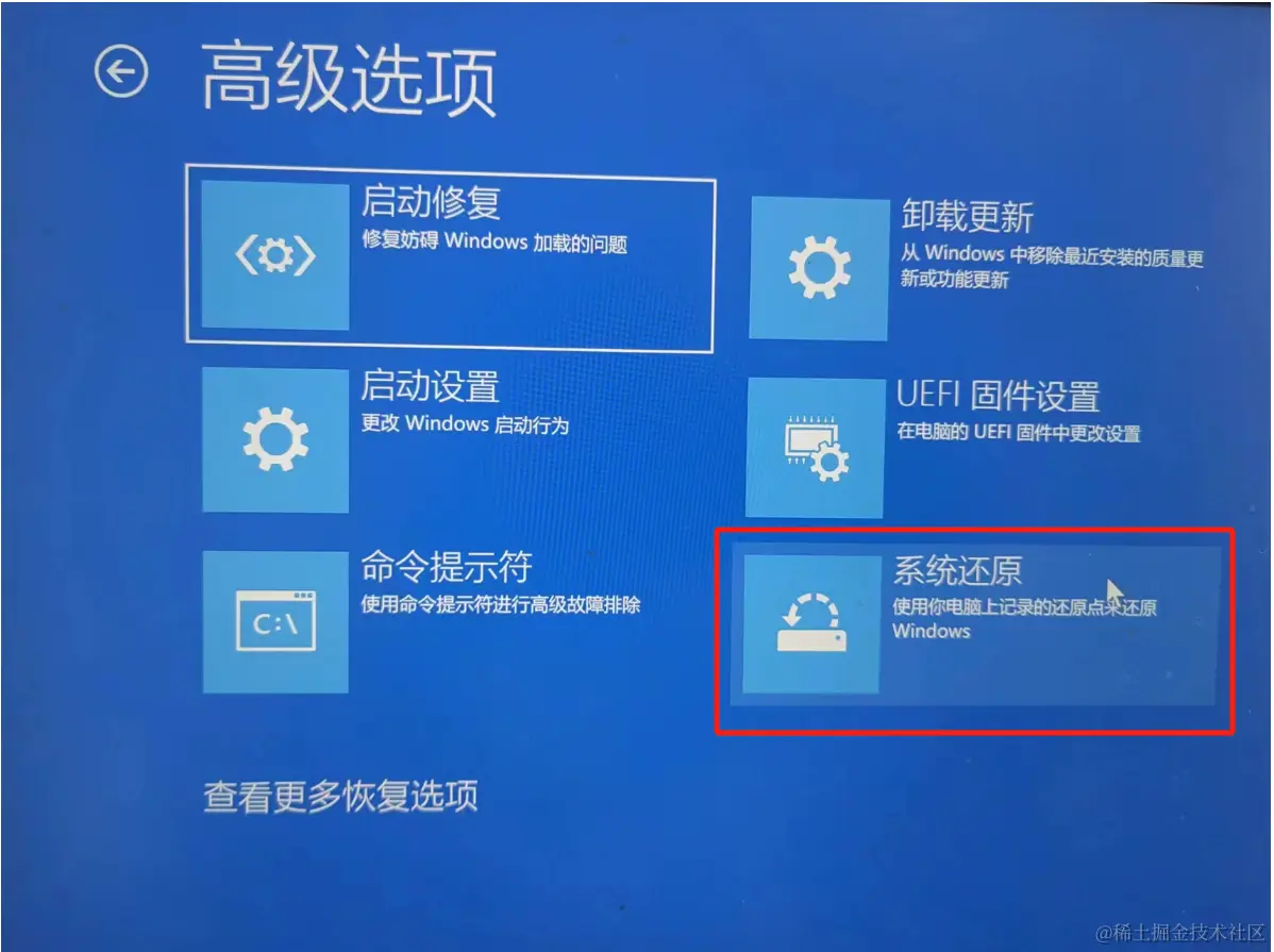 可能有读者会有疑惑,明明在设置里面的恢复那一步就有还原系统操作了,为什么还要进行下一步。