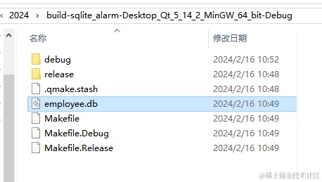 运行本例时,先点击构建,构建完成后将本项目下的整个 photos 文件夹拷贝到构建出来的C:\Users\ll\Desktop\QT Projects\2024\build-sqlite_alarm-Desktop_Qt_5_14_2_MinGW_64_bit-Debug 目录下。因为本程序会从数据库里读取出员工的照片路径信息,所以需要提前将照片文件夹放至可执行程序同一级目录下。点击表中的项,当切换员工的信息里,我们可以看到左下角被映射的内容发生了改变,变成了当前选择行的员工信息,右下角的照片头像也变成了该员工的照片信息。本例实现的就是从数据库里取数据并显示到 QTableView 及搭配其他控件使用的例子。