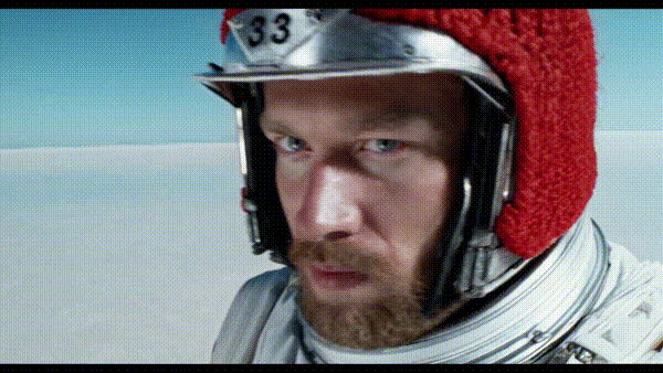 Prompt: A movie trailer featuring the adventures of the 30 year old space man wearing a red wool knitted motorcycle helmet, blue sky, salt desert, cinematic style, shot on 35mm film, vivid colors.