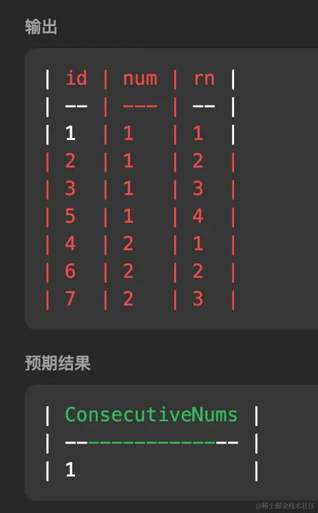 首先,有个前提是 id 是必须连续的,如果 id 不连续,那么不可能通过 id + 1 这种简单判断方法来判断该数字是否连续出现。