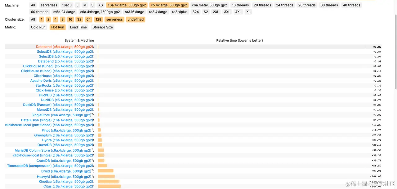 (数据采集自 benchmark.clickhouse.com ,2023 年 03 月)