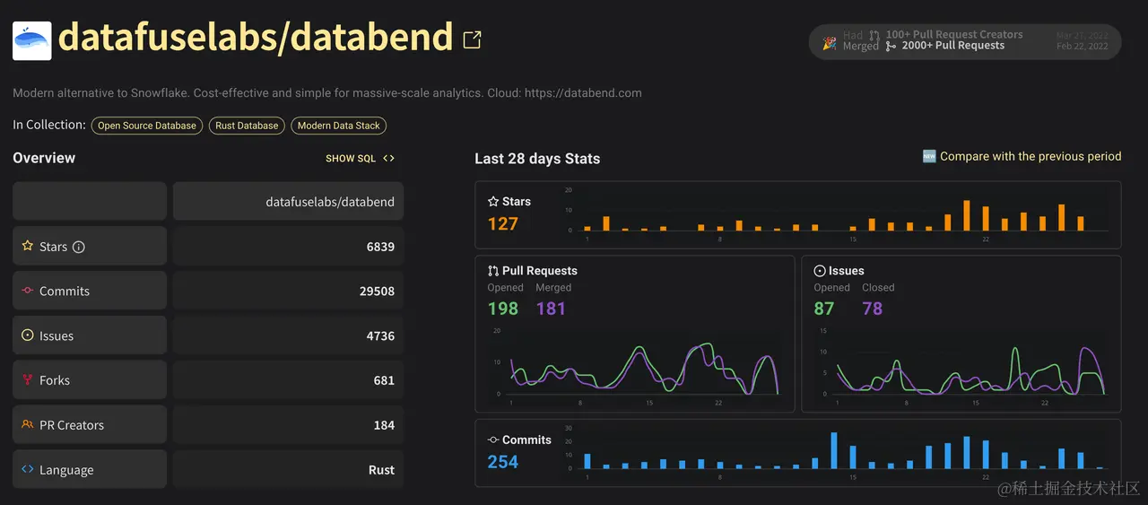 开源,是 Databend 团队不变的初心。在过去一年里,Databend 主 Repo: