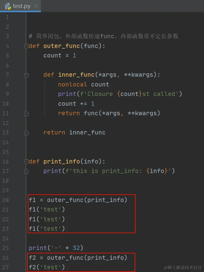 前面两节中,我们定义完闭包后,在使用过程中只创建了一个闭包函数,现在我们在Pycharm中做如下实验: