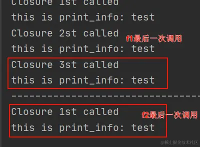 要提一下的是,在outer_func中定义了count,如果在inner_func只是读取count的话直接使用count即可,如果在inner_func中要写count,则需要在inner_func中声明nonlocal,与普通函数中修改全局变量时使用global类似,只不过nonlocal修饰的变量是外部函数中的变量。在本实验中,使用outer_func(print_info)定义两个"相同"的闭包f1和f2,f1调用3次,f2调用1次,从运行结果来看f1中的count虽然增加了,但是并不影响f2中的count,这说明了闭包一个很重要的特点:内存隔离。也就是说两个闭包函数的引用环境是独立的,彼此不影响,就像类的实例对象一样。