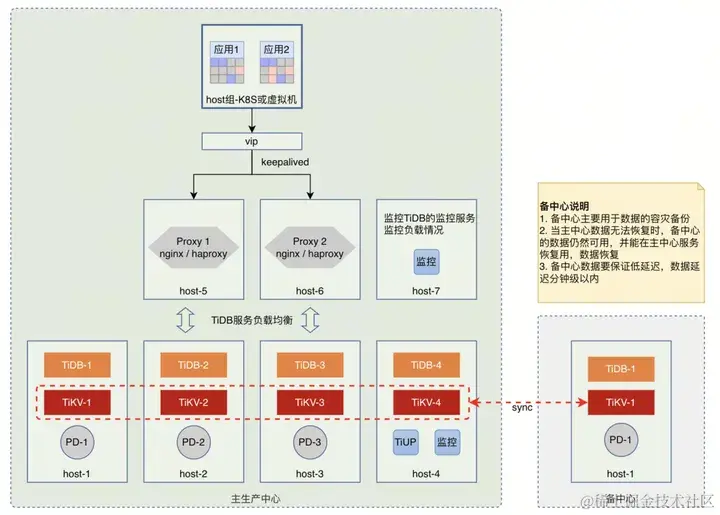 从整体数据规模、业务访问请求、资源高可用等维度考虑,我们制定了详细的部署方案。结合现有应用和数据库情况,我们设计了分批业务迁移计划,历时 3 个月成功完成了所有应用的平滑迁移和部署。在主中心部署一套包含 4 台物理服务器的 TiDB 集群,用于支撑综合运营管理平台。主中心集群通过 BR 完成数据库备份任务。MySQL 数据的迁移工作由 DM 组件完成,以确保数据迁移的顺利进行。未来,我们计划在异地构建一套单副本的集群,通过 TiCDC 组件搭建数据容灾的演练环境,从而实现异地灾备。