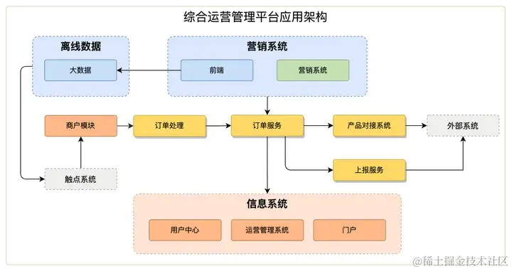 综合运营管理平台是骏伯最核心的业务系统,主要覆盖营销、渠道、媒介、创意等业务部门,底层数据库包含 OLTP、OLAP 两种,业务系统主要包含营销、订单和信息展现三部分。订单数据均会回流到订单服务模块,订单成功后会推送到下单流程,同时可以在平台中及时查看订单信息。