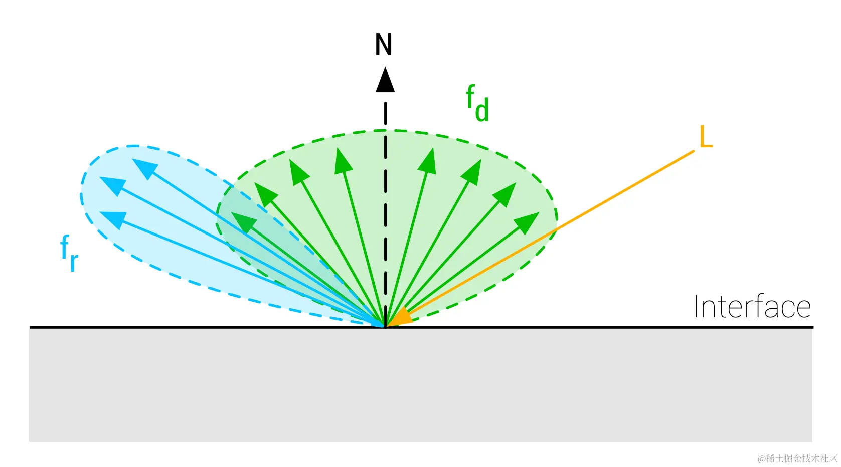 BRDF将标准材料的表面响应描述为由两个项组成的函数: