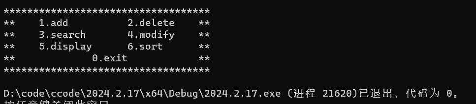 printf("** 0.exit **\n");