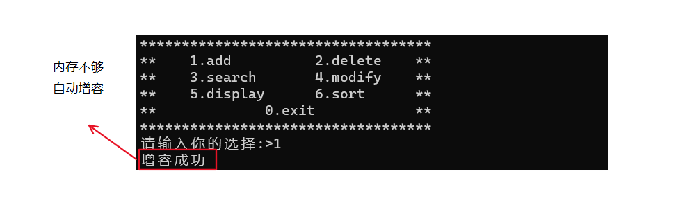printf("增容成功\n");