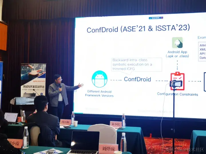 南方科技大学计算机科学与工程系长聘副教授 (研 究员)刘烨庞老师,在会上分享了他们在自动化检测技术方面的探索,通过《面向移动软件生态的缺陷自动化检测技术》的主题演讲,他向与会嘉宾详细介绍了他们团队在移动软件生态下开展的缺陷自动化检测技术的研究成果和实践经验。这一研究方向旨在应对移动应用生态中的软件缺陷和质量问题,为提升移动应用的稳定性和安全性提供了有力支持。