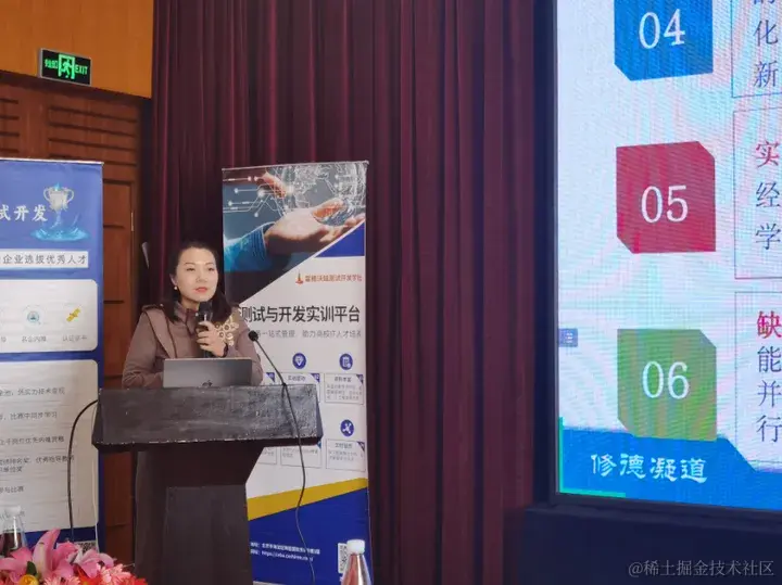北京信息科技大学的卢慧雅老师在会上分享了题为《面向高水平应用的软件测试实验教学探索》的主题演讲。她详细介绍了如何借助企业的第三方平台,将软件测试教学平台化,使学生能够在平台上进行软件测试的全流程演练,从而获得更多的实战经验。这种教学模式有效地提升了学生的实践能力,并帮助他们更好地适应高水平应用软件测试的挑战。
