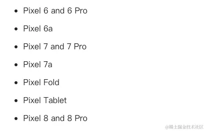 除了模拟器之外,当前以下机型可以优先优先体验Android 15。
