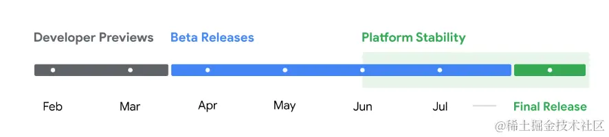 预计 Android 15将于2024年6月在 Beta 3上达到平台稳定。里程碑如下图所示。