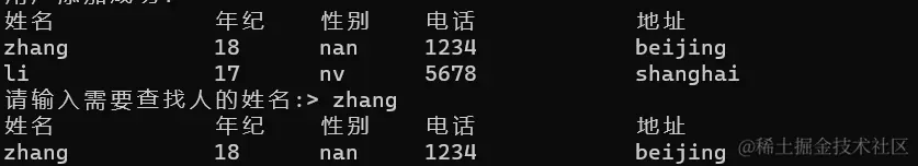 在删除指定练习人时我们需通过其姓名寻找该联系人的下标。找到返回其下标,否则返回-1、
