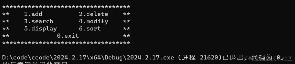 - 选择退出之后保存数据,程序结束。