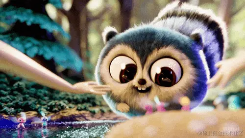 “一个小的、圆的、毛茸茸的、有一双大而富有表现力的眼睛的生物探索了一个充满活力的魔法森林的3D动画”。