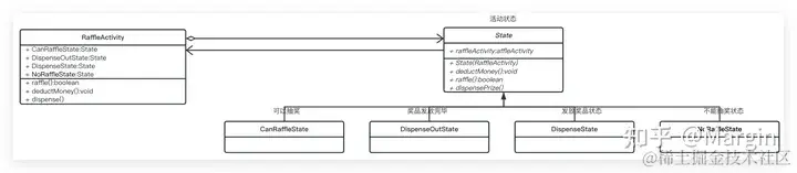 具体状态(ConcreteState)角色:CanRaffleState、DispenseOutState、DispenseState、NoRaffleState