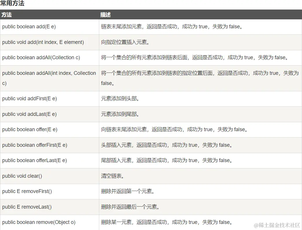 更多的API方法可以参考:LinkedList全量方法