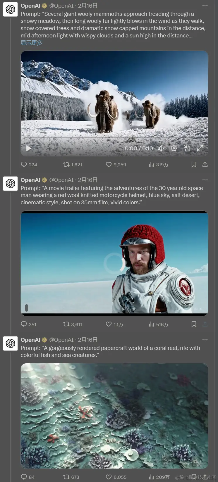 2月16日openai又出了什么大招呢? 栈江湖 2024-02-18 111 阅读1分钟 2024年2月16日通过google trends可以发现“sora”被大量的搜索与关注。那么什么是“sora”呢? Sora是OpenAI发布的一款文本到视频的AI模型,它能够根据文本指令生成逼真和富有想象力的场景。Sora 可以创建长达 60 秒的视频,其中包含高度详细的场景、复杂的摄像机运动和具有生动情感的多个角色。 “Introducing Sora: Creating video from text” openai官方twitter中也可以看到给出了多个示例,演示通过文字生成的视频。