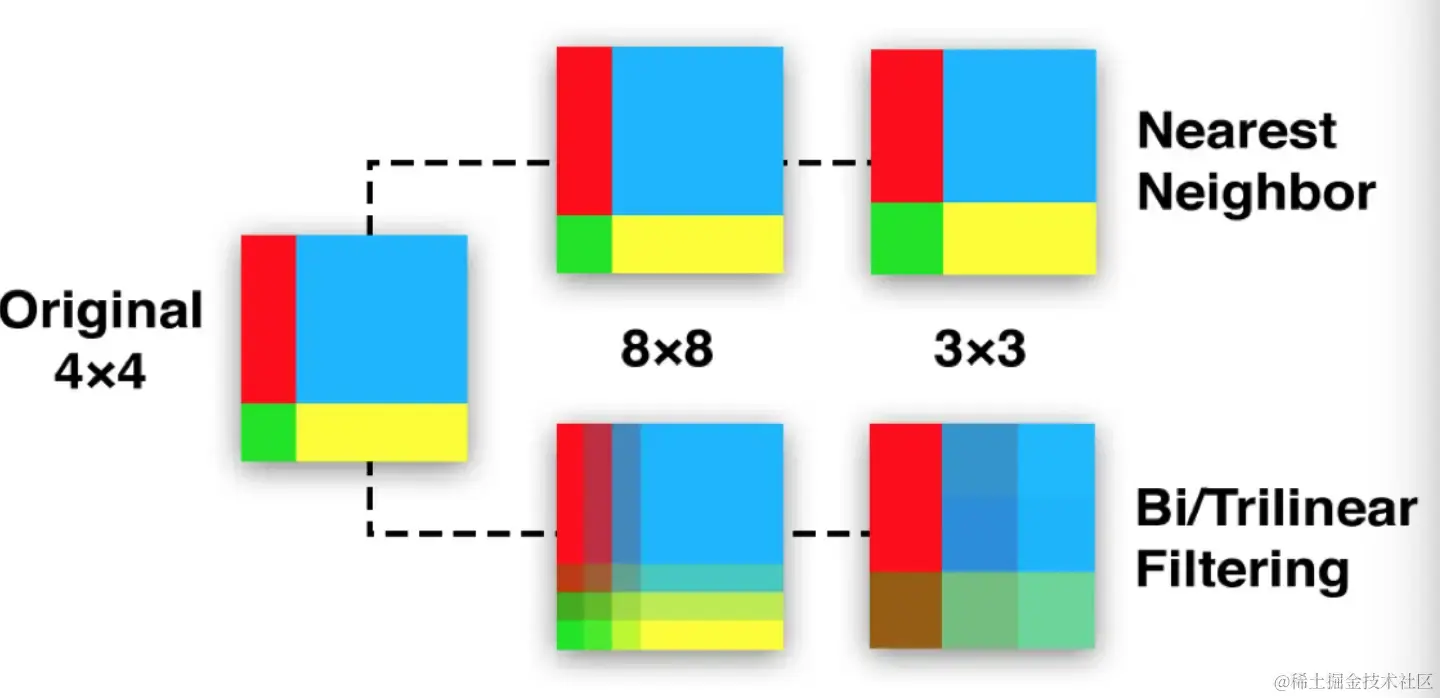最后我们来拉拉minificationFilter和magnificationFilter属性。总得来讲,当我们视图显示一个图片的时候,都应该正确地显示这个图片(即1:1),原因如下:
