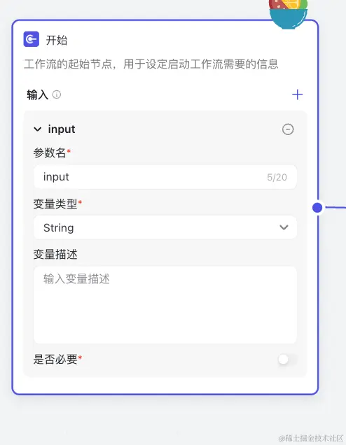 开始节点对应我们的输入内容,这边我对输入内容的限制如下: