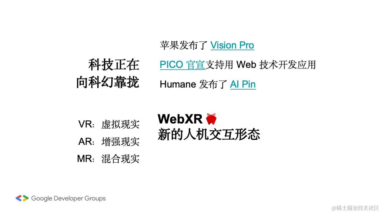 随着Vision Pro等眼镜设备的发展,未来一定是一个充满3D内容的时代。这些硬件厂商,最缺乏的就是内容生态,而以Web技术为支撑的创作者和开发者,必然可以在VR/AR/MR时代,成为创造全新内容的生产力。(PICO官宣支持用Web技术开发应用)