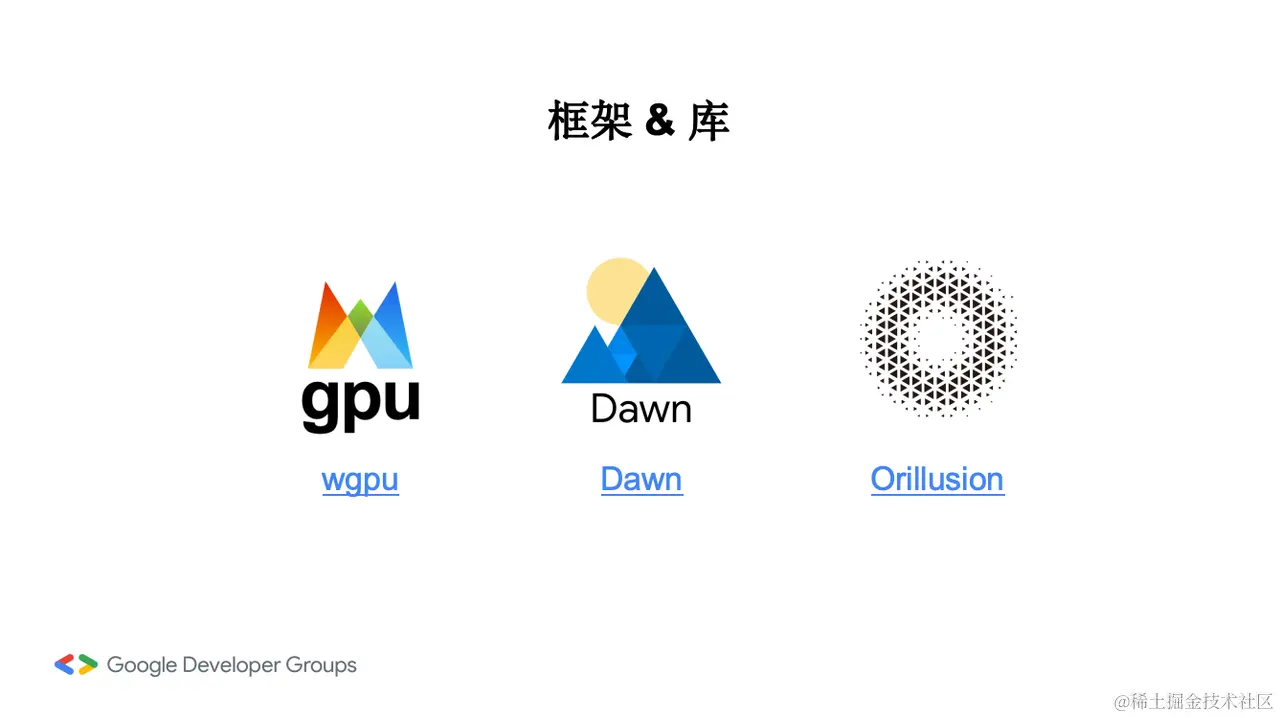 目前已经有一些基于WebGPU标准的开发框架,可以供开发者快速的调用WebGPU的能力,包括基于Rust语言的wgpu,基于C++的Dawn以及基于JS/TS语言的Orillusion。