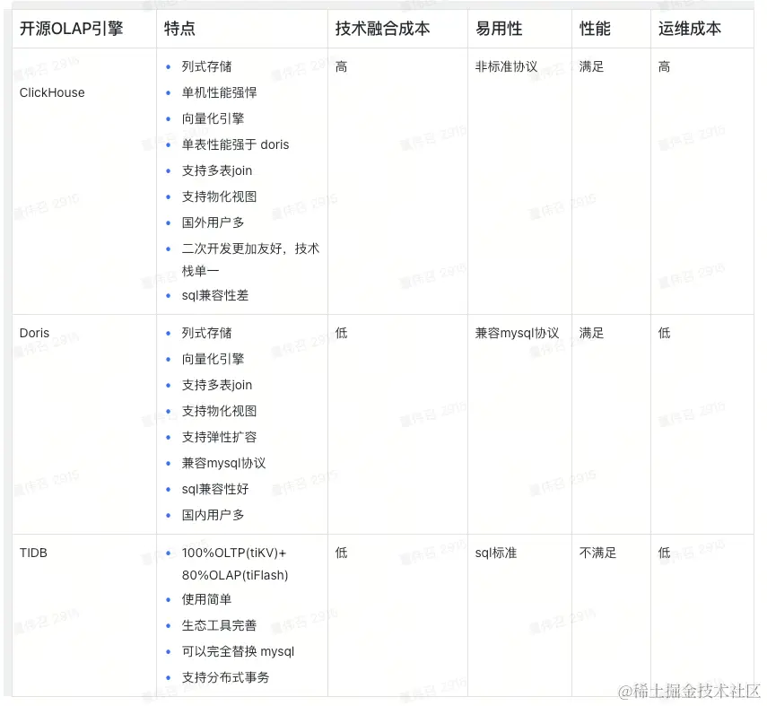 下面是一个选型对比,没有好坏,只是Doris适合我们