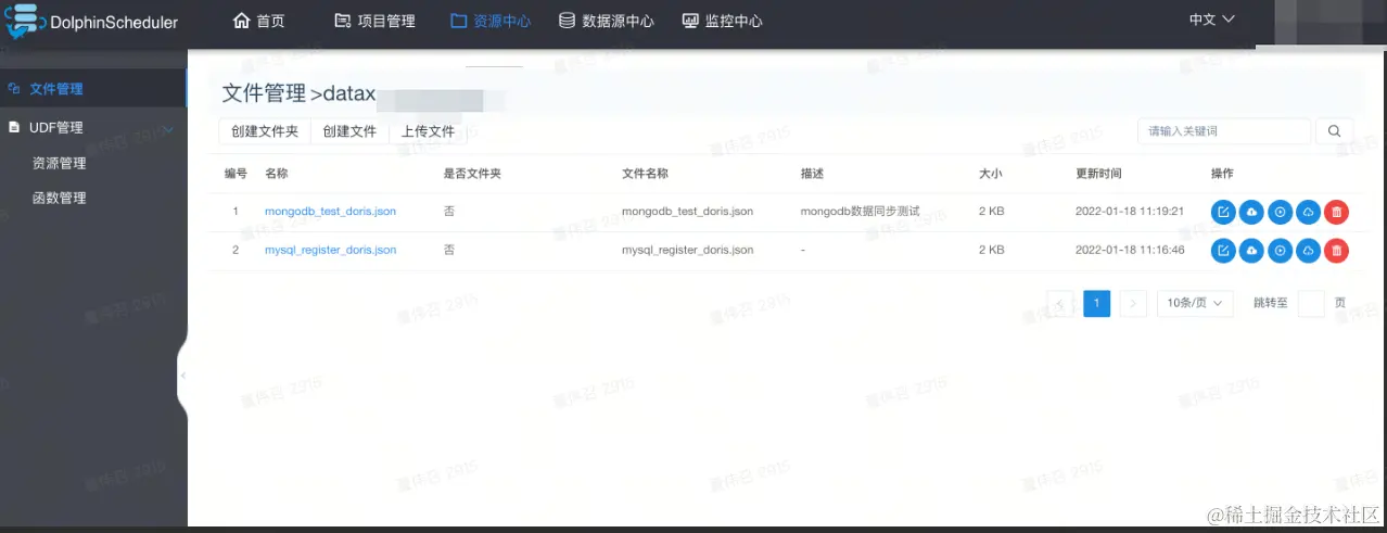 在资源中心创建各个团队文件夹,并在文件夹中创建对应datax文件