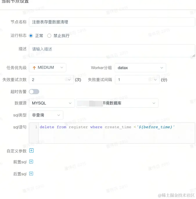 如果迁移完,需要进行原数据删除,则新建sql任务,编写sql语句,进行清理