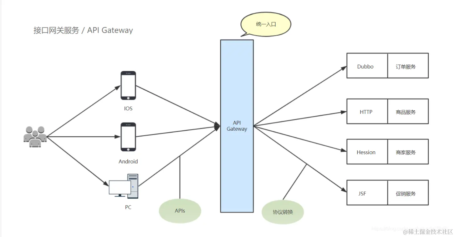 为了保证我们接口的安全性,可以提供统一的API网关,它可以实现过滤、鉴权、限流等功能。