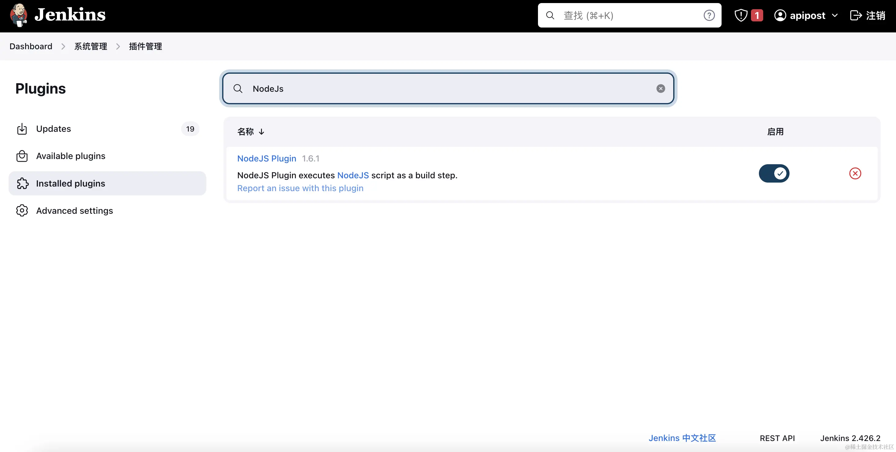 Apipost cli基于Node js运行 需要在jenkins上配置NodeJs依赖