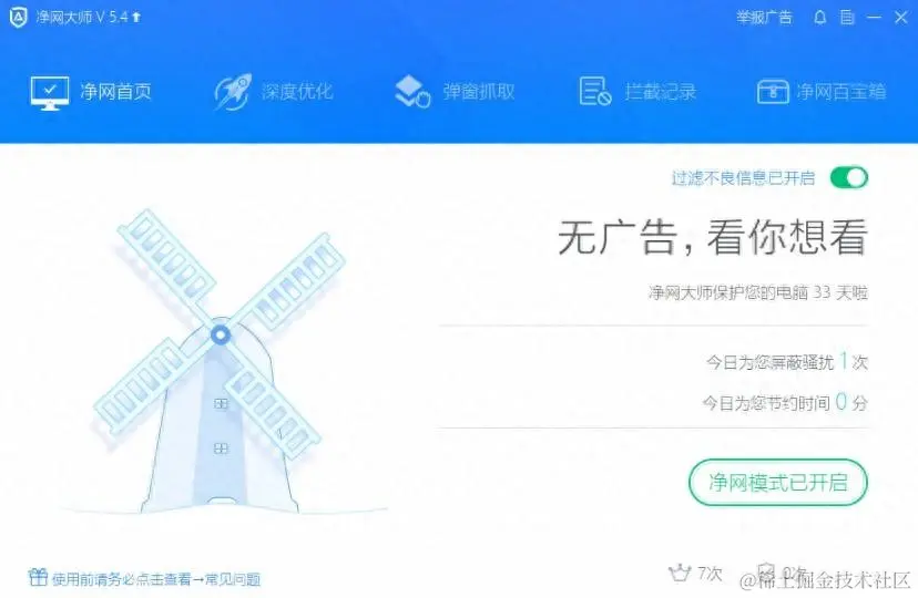 净网大师是一款专注于广告拦截的软件。它能有效拦截网页、游戏、弹窗等广告,还有视频广告过滤功能,能过滤国内主流视频广告。此外,它能阻止恶意静默安装,同时具备智能流量管理功能,确保流量使用安全。