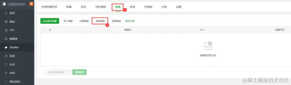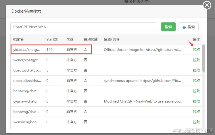 6、点击顶部的镜像-搜索镜像,搜索 ChatGPT-Next-Web