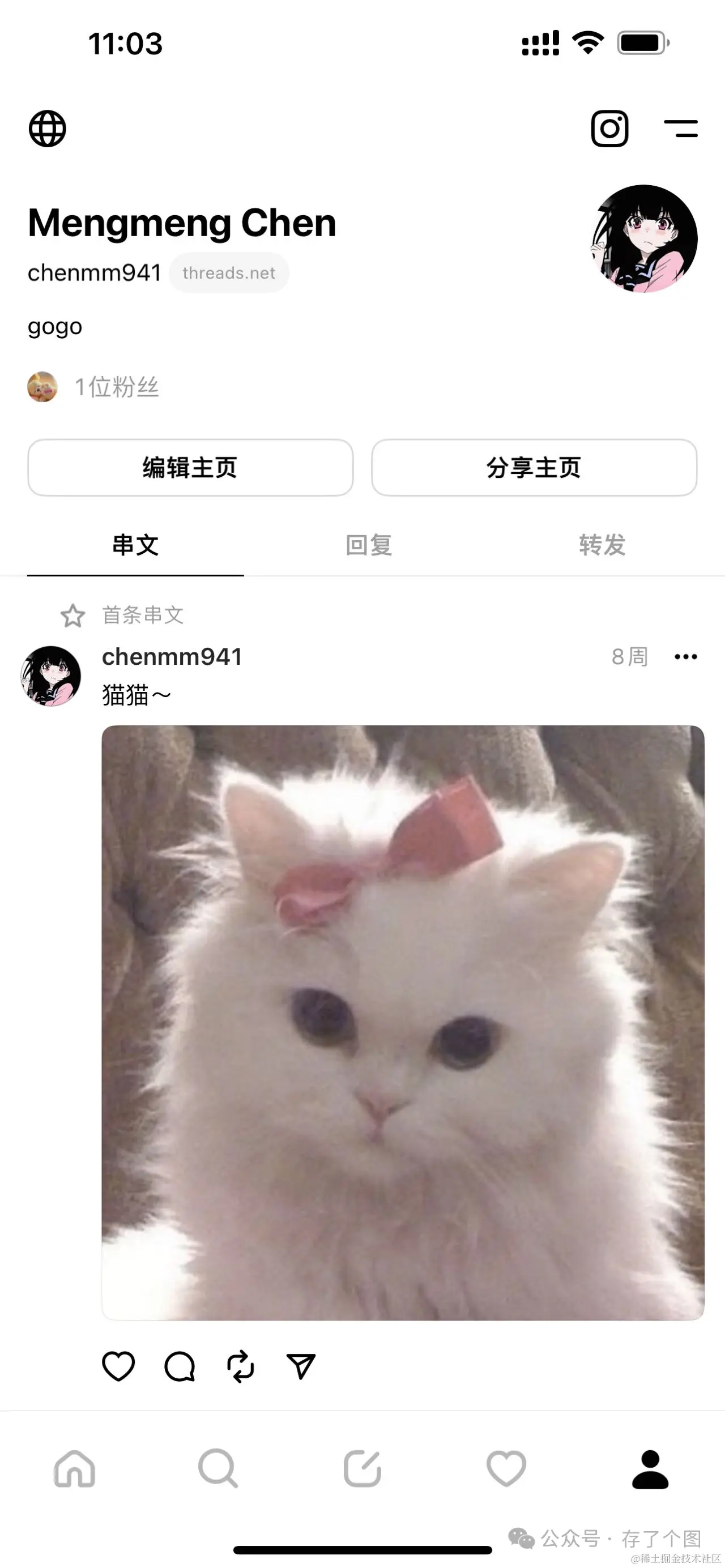 此时打开Threads就会发现已经变成中文界面啦!