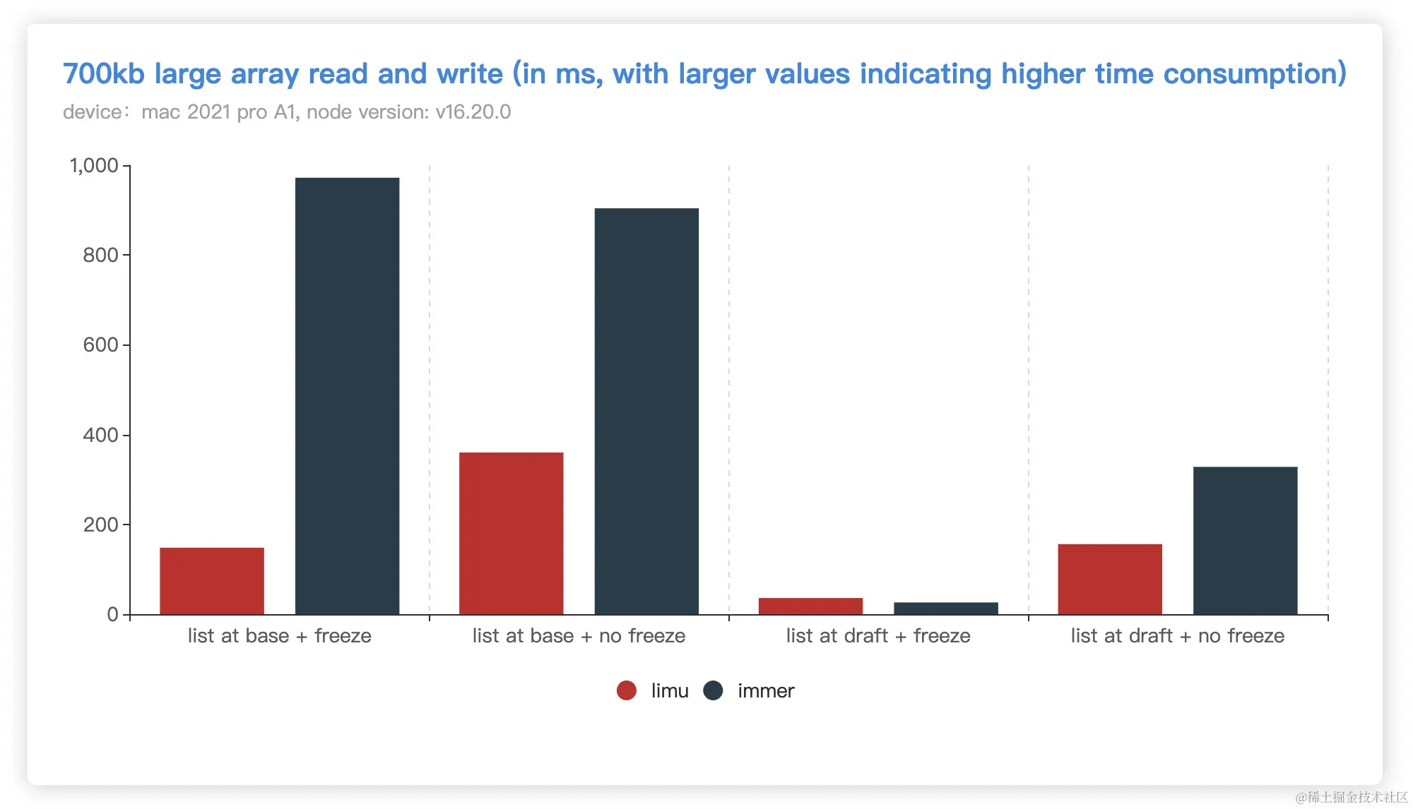 在各种场景中,limu的速度通常是immer的2倍或20倍以上,展现出惊人的性能。你可以通过点击在线性能演示来亲自体验这一结果。