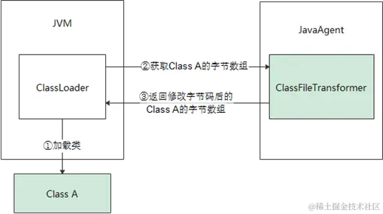 静态加载时,字节码增强是在类加载时发生的,当Java程序启动时,类加载过程中所有被加载的类都会经过JavaAgent所定义的类文件转换器的处理。