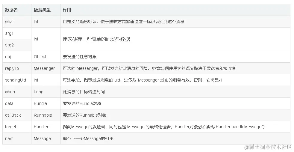 Message可以理解为是要执行任务的载体,那这个载体里面需要包含什么内容呢?Message包含的主要数据和作用如下所示: