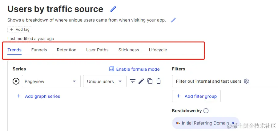 通过用户访问来源分析,企业可以更有效地分配资源,提高广告和营销活动的ROI(投资回报率),并确保用户体验的持续改进。PostHog利用Referring也是轻松分析用户访问来源: