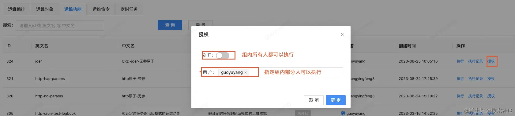 •运维功能: 执行单个运维功能,配置审批,授权执行等属性