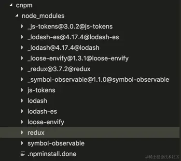 它生成的 node_modules 目录采用的是以 版本号 @包名 命名,然后再做软链接到只以包名命名的文件夹上。
