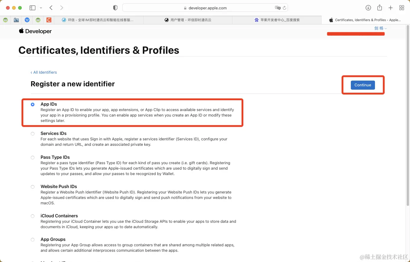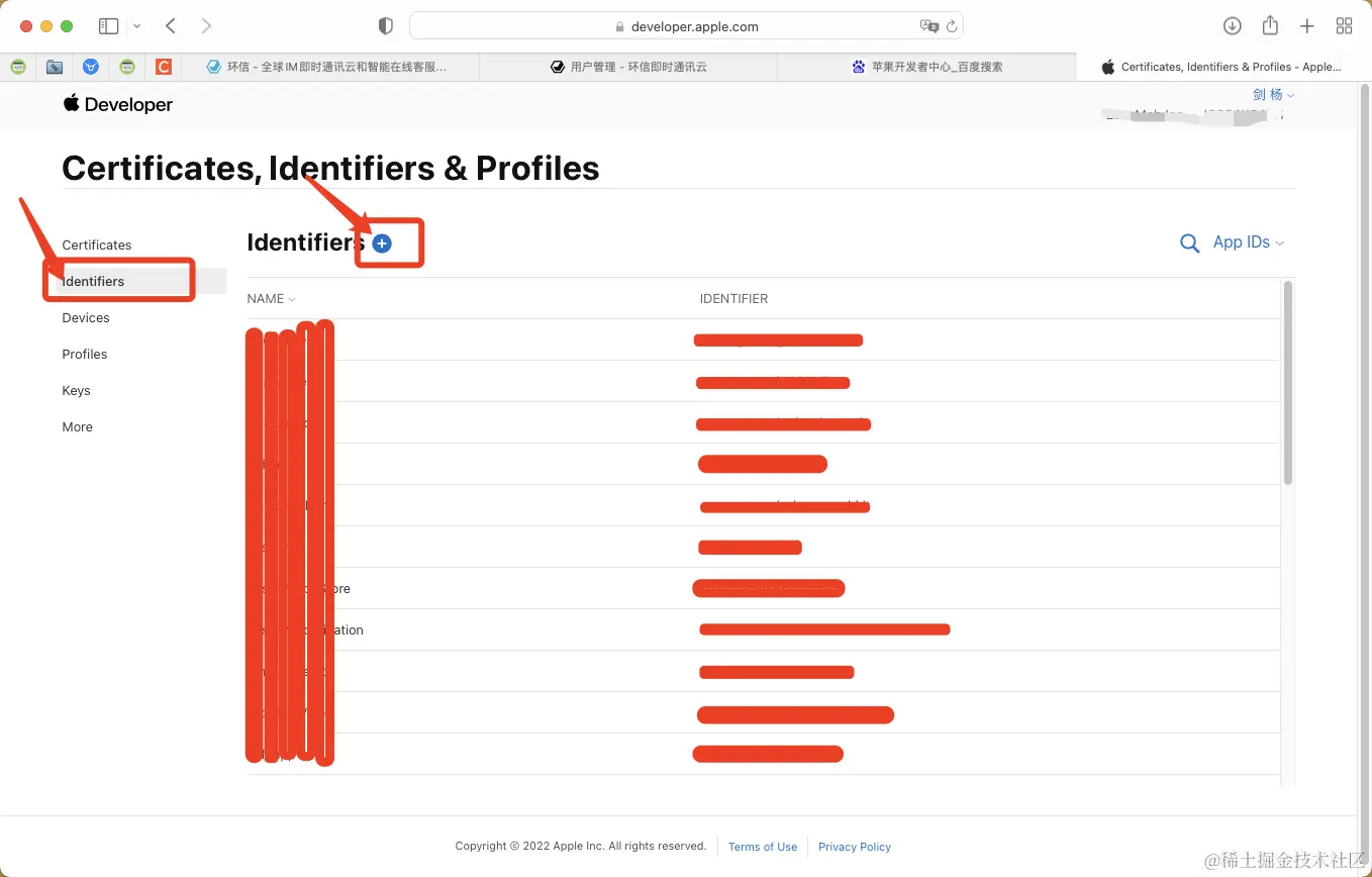 2.苹果开发者中心创建 - Identifiers.