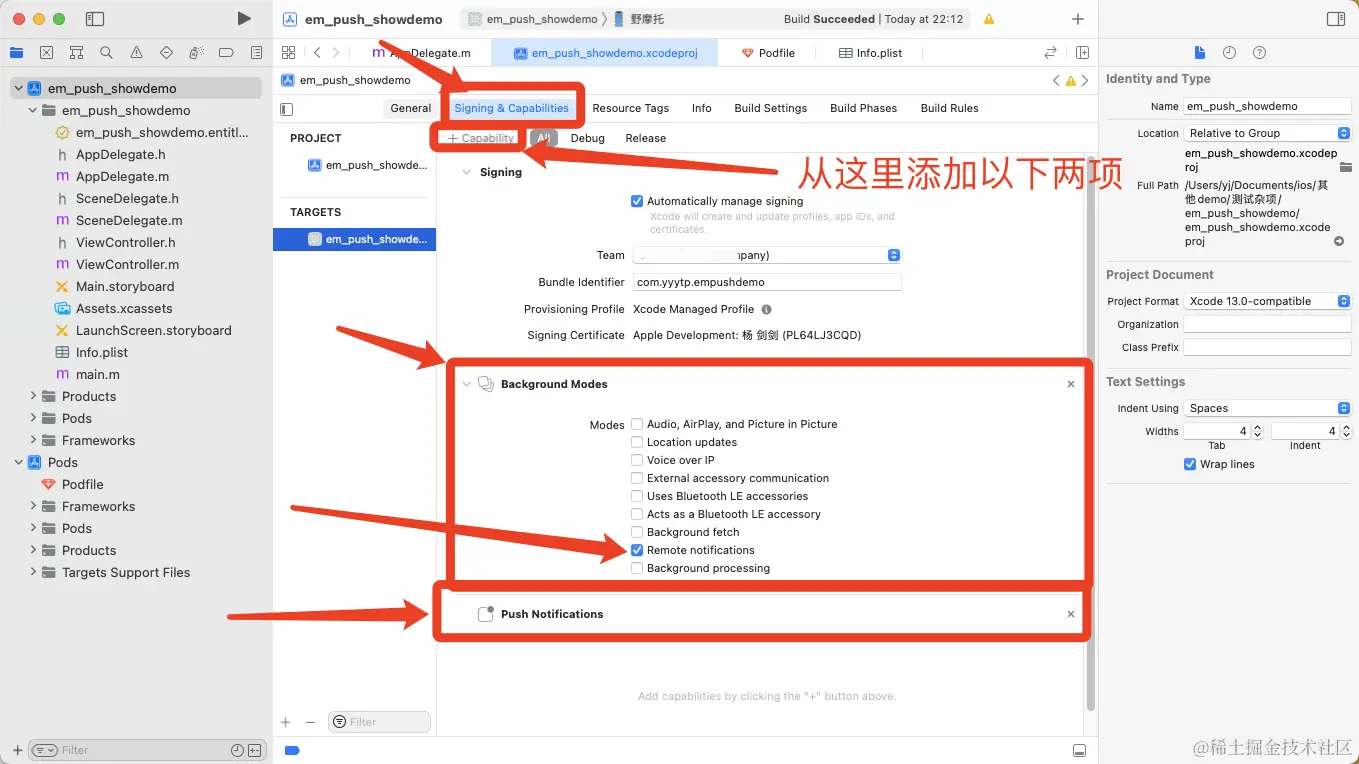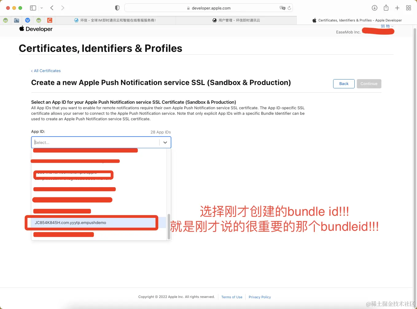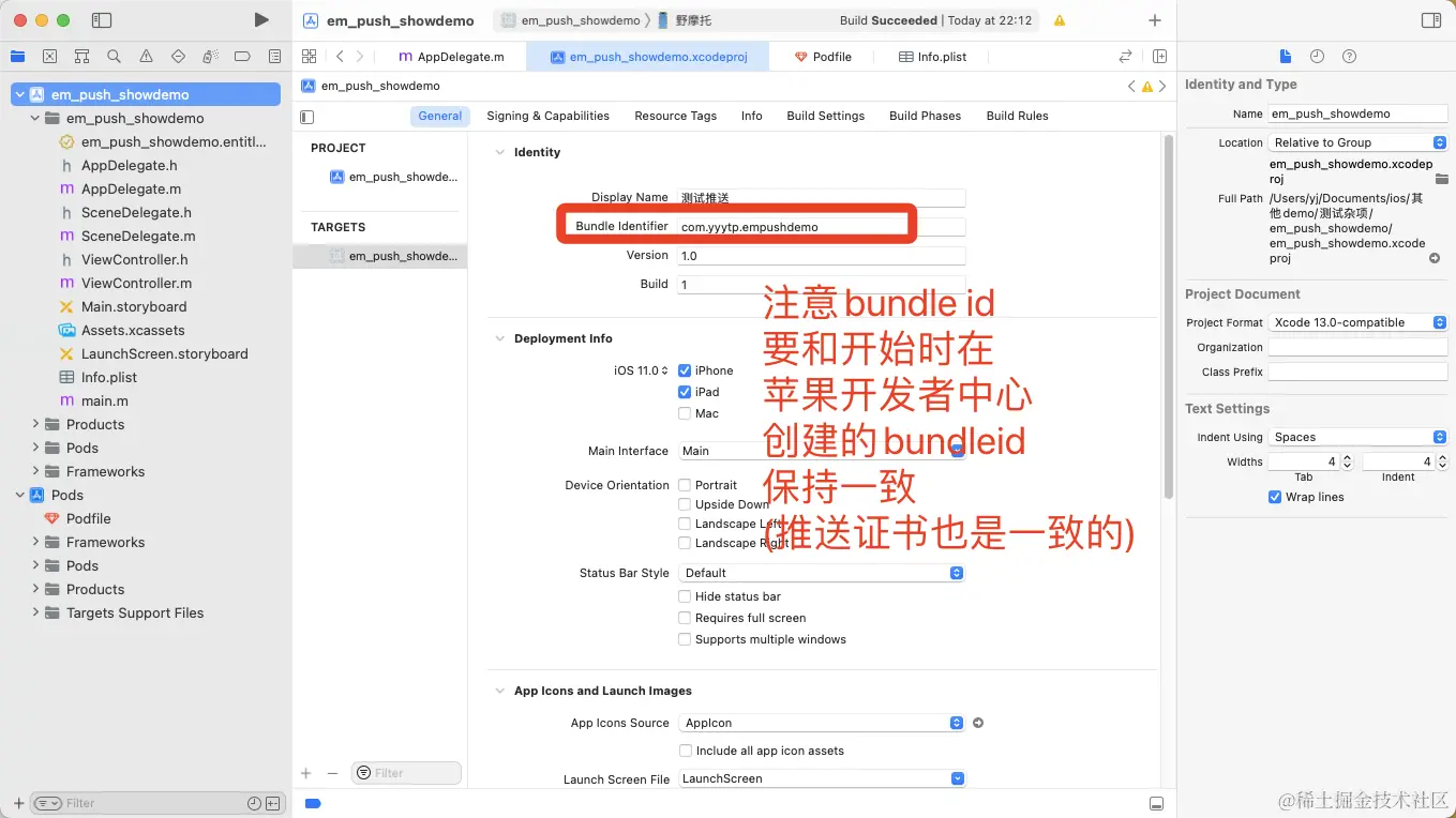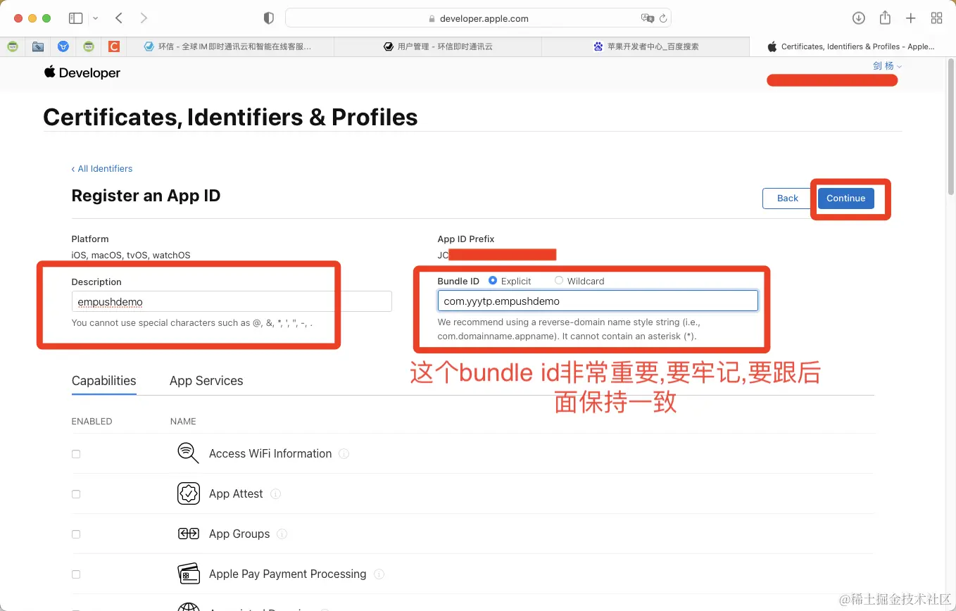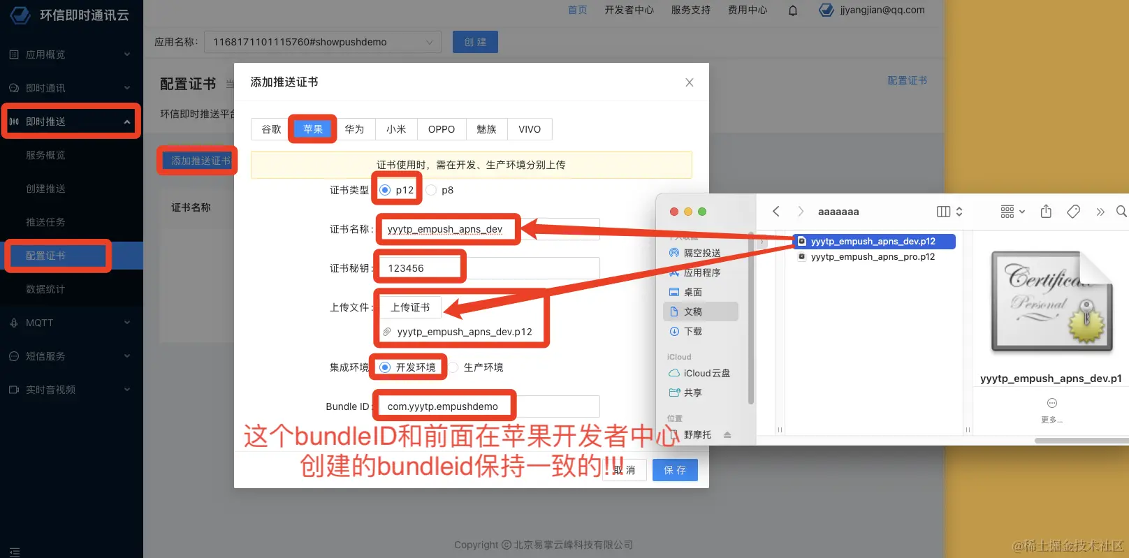 1.创建了bundleid为com.yyytp.empushdemo的app