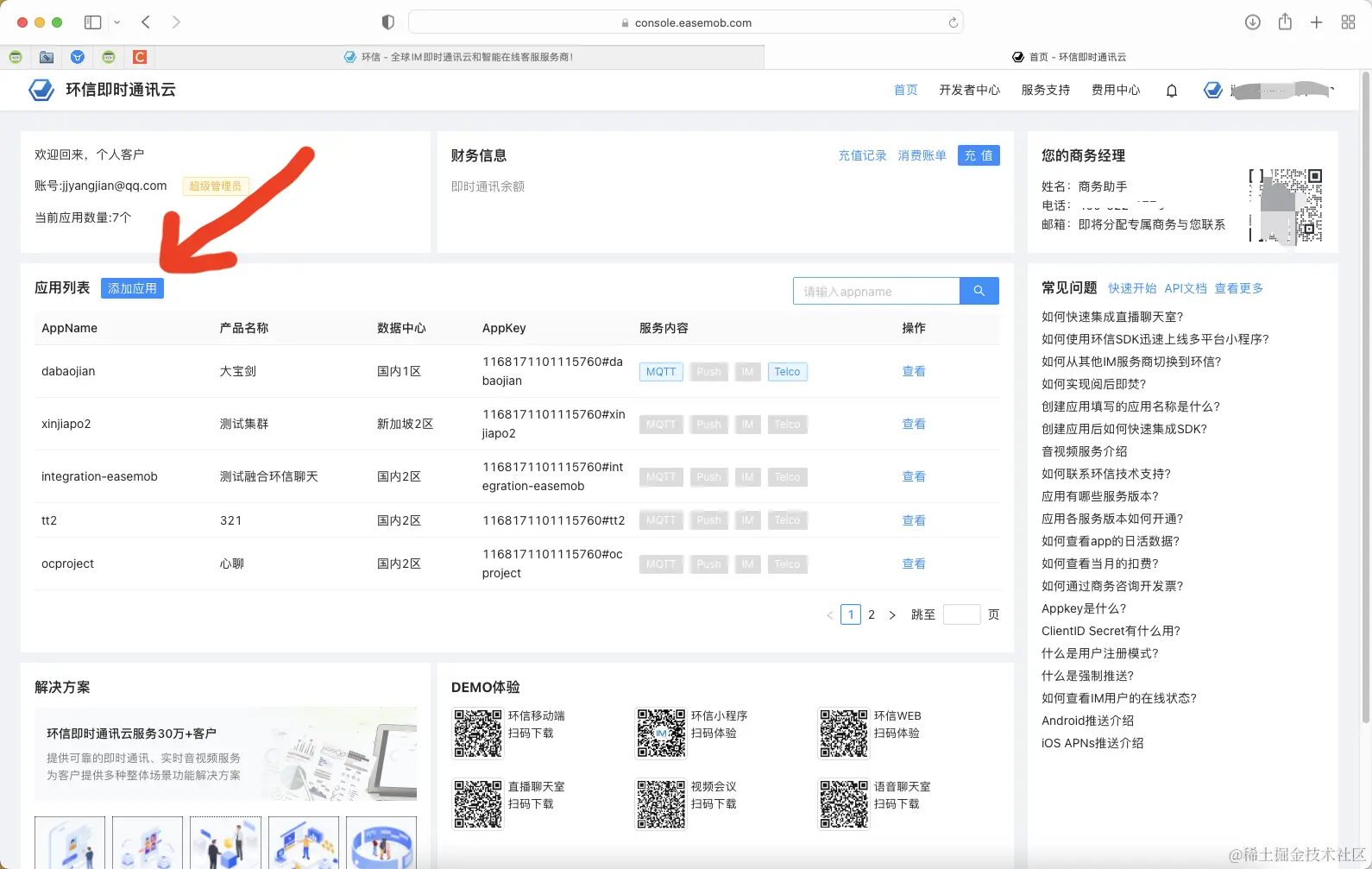 3.有环信开发者账号
