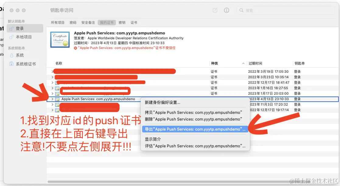 5.安装证书到本机,并导出 push - p12