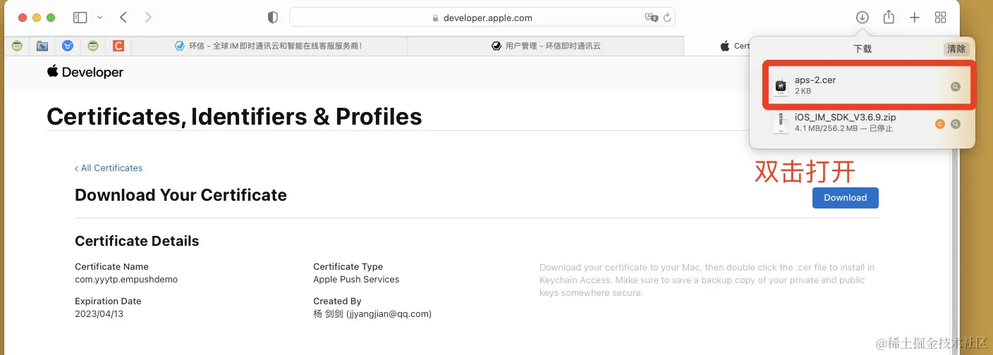 (开发证书名称 : yyytp_empush_apns_dev)